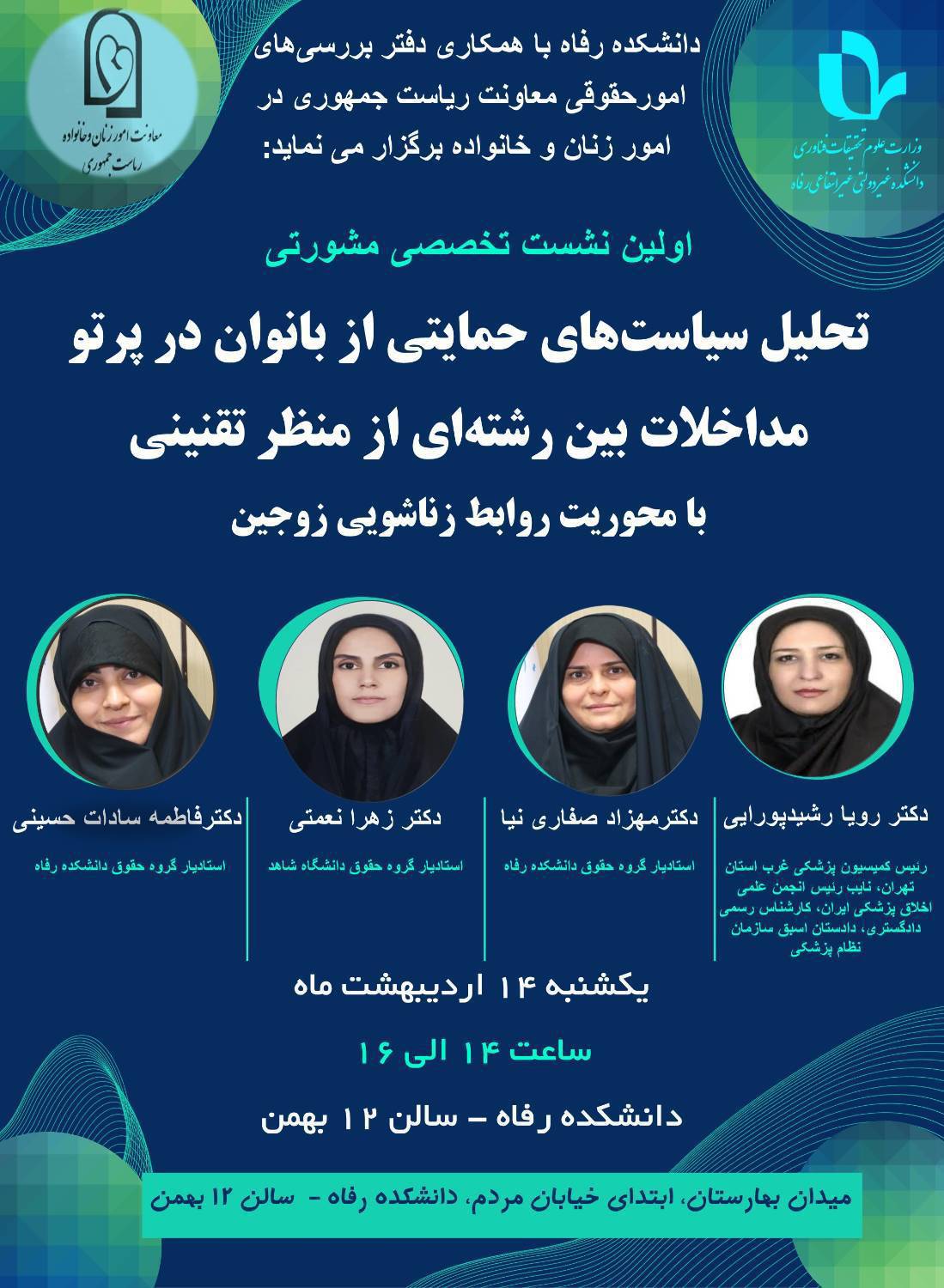 دانشکده رفاه با همکاری دفتر بررسی های امور حقوقی معاونت ریاست جمهوری در امور زنان و خانواده برگزار می نماید: