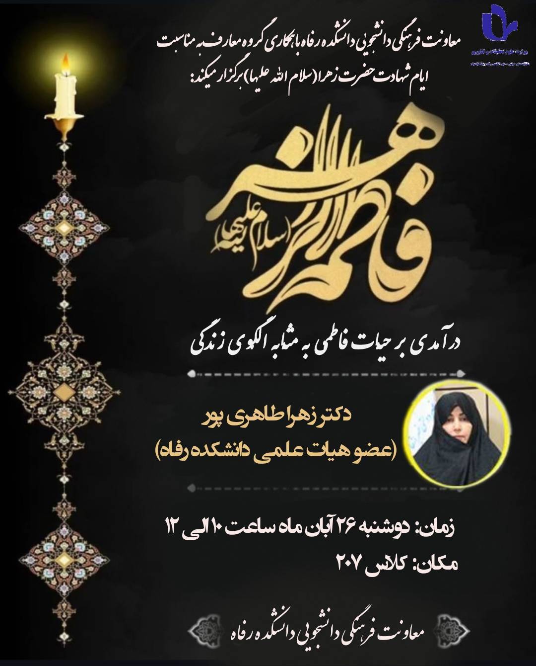 سرپرست کانون تئاتر دانشکده رفاه، در پایان ضمن تشکر از همراهی آقای دکتر باهنر رئیس هیات امنای دانشکده، خانم دکتر طاهری پور ریاست دانشکده، خانم دکتر حنیفه زاده معاونت فرهنگی دانشجویی دانشکده و سایر همکاران همراه، خبر از اجرای ویژه ایام شهادت حضرت زهرا(س) با تلفیقی از وقایع جنگ ۱۲ روزه داد.